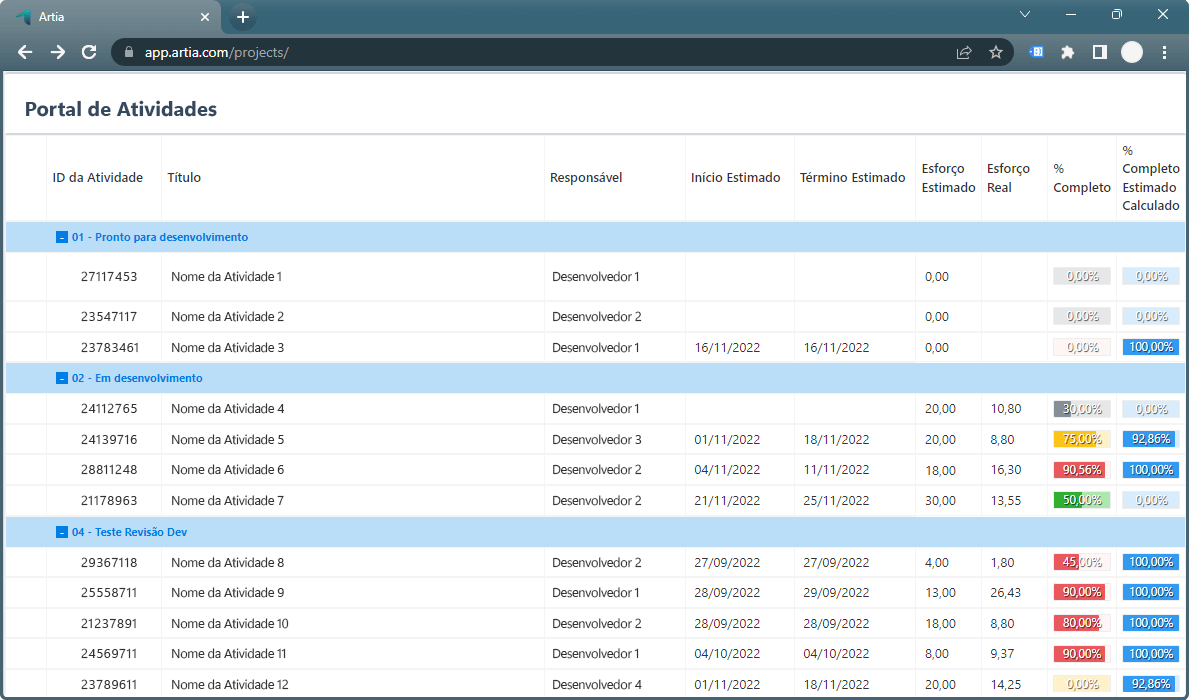 Para que você tenha controle sobre o andamento do projeto, enviamos um link para visualização e acompanhamento em tempo real das atividades que estão sendo executadas.
